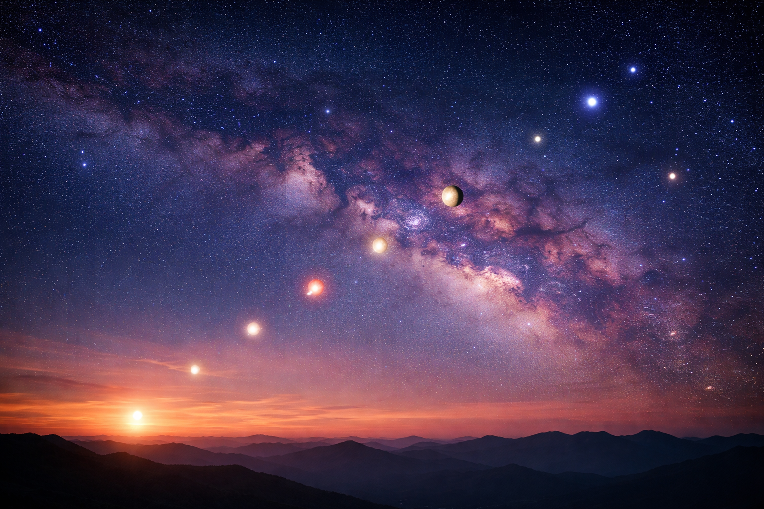 Six planets sharing one arc across the evening horizon… Mercury, Venus, Jupiter, Saturn, Uranus, and Neptune appearing together after sunset in a rare alignment most people will only witness once. Not mythology… not hype… just celestial mechanics revealing the scale and precision of creation in real time.