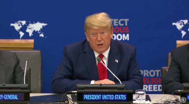 Trump also spoke of Muslims and Jews who were killed for their faith: “In 2016, an 85-year-old Catholic priest was viciously killed while celebrating mass in Normandy, France. In the past year, the United States endured horrifying anti-Semitic attacks against Jewish Americans at synagogues in Pennsylvania and California. In March, Muslims praying with their families were sadistically murdered in New Zealand. On Easter Sunday this year, terrorists bombed Christian churches in Sri Lanka, killing hundreds of faithful worshippers. Who would believe this is even possible?”