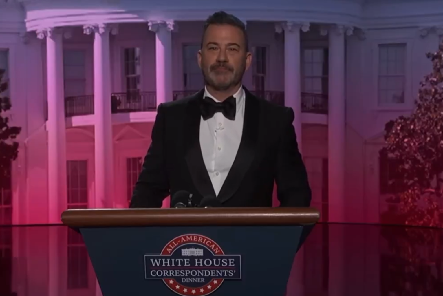 Since no comedian was set to host the evening, Kimmel offered an alternative, pre-taped roast, where he pretended was in the room at the Saturday night dinner while making jokes, mostly at President Trump’s expense.