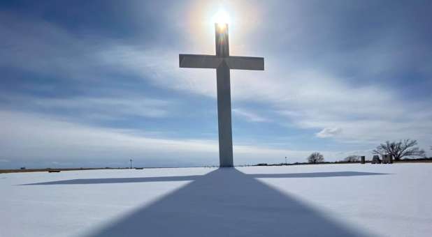 His son pointed to a giant cross that sits next to the billboard, usually illuminated during the holiday season.