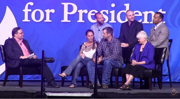 On the stage with him was a who’s who of Christians persecuted, fined, bankrupted, and/or kidnapped because they refused to silence their witness for Christ: Dick and Betty Odgaard, Aaron and Melissa Klein, Barronelle Stutzman, Kelvin Cochran, Nagmeh Abedini, Philip Monk, and Blaine Adamson. Each shared their stories of the government – of the United States or Iran (quite a pairing) – squeezing them for their stand on behalf of Christ and Biblical morality.