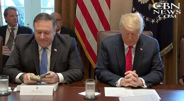 In a move that served as a reminder to many people of faith that the U.S. is still a nation under God, President Donald Trump had his secretary of state, Mike Pompeo, open Thursday’s Cabinet meeting with a word of prayer.