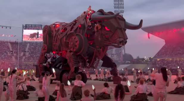 The “hero” of the opening ceremony, a character known as Stella, calmed the creature down and then all of the human performers gathered around the giant bull and literally began to bow down and worship it. I have seen a lot of really weird things in recent years, but I have never seen anything quite like this.