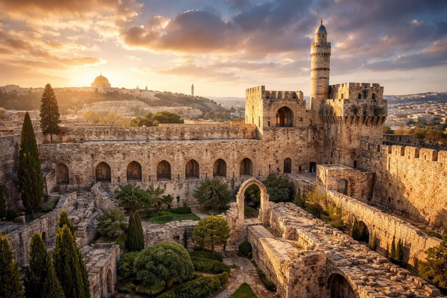 The complex is situated beside the Jaffa Gate of the Old City, and has undergone several rounds of destruction and rebuilding, reflecting a fascinating patchwork of Jerusalem’s history. Most recently it has benefitted from a three year renovation project adding exciting interactive displays and a new entrance pavilion just outside the city walls.