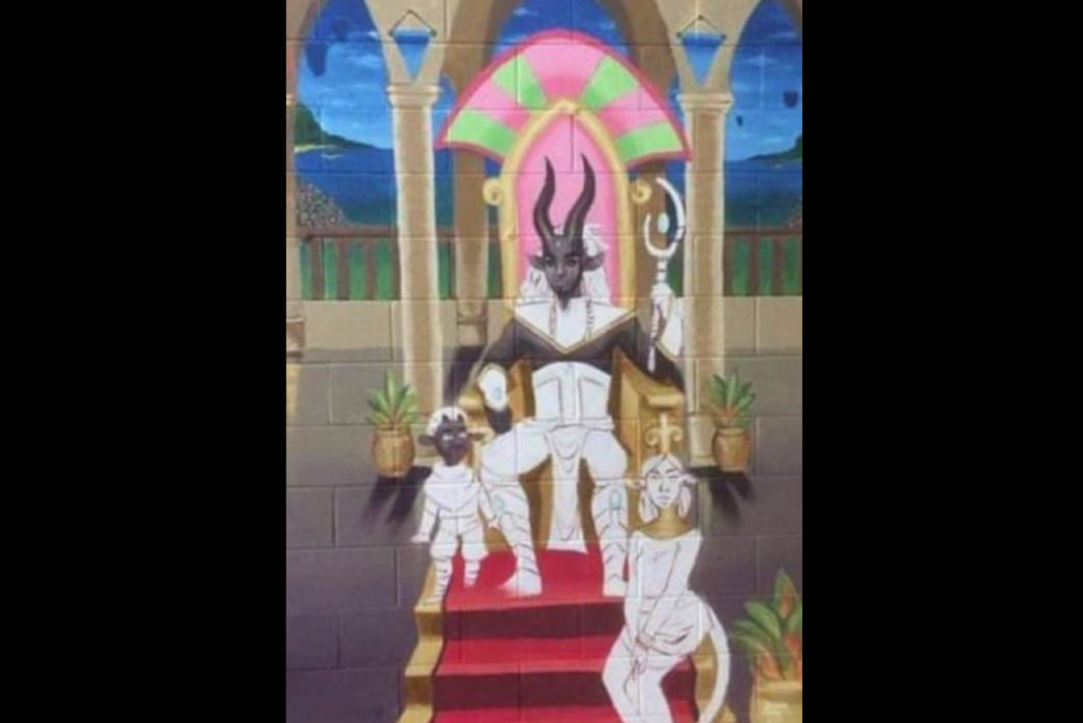 This is a school wall mural of “Moloch” a Satanic demon from Jenks Middle School in Pawtucket Rhode Island.