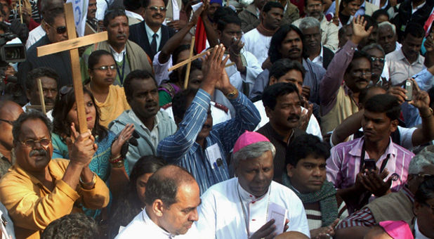 Organized jointly by confederations of churches and Muslim groups in India, the demonstrators demanded affirmative action for Dalits (formerly “untouchables”) who have converted to Christianity or Islam.