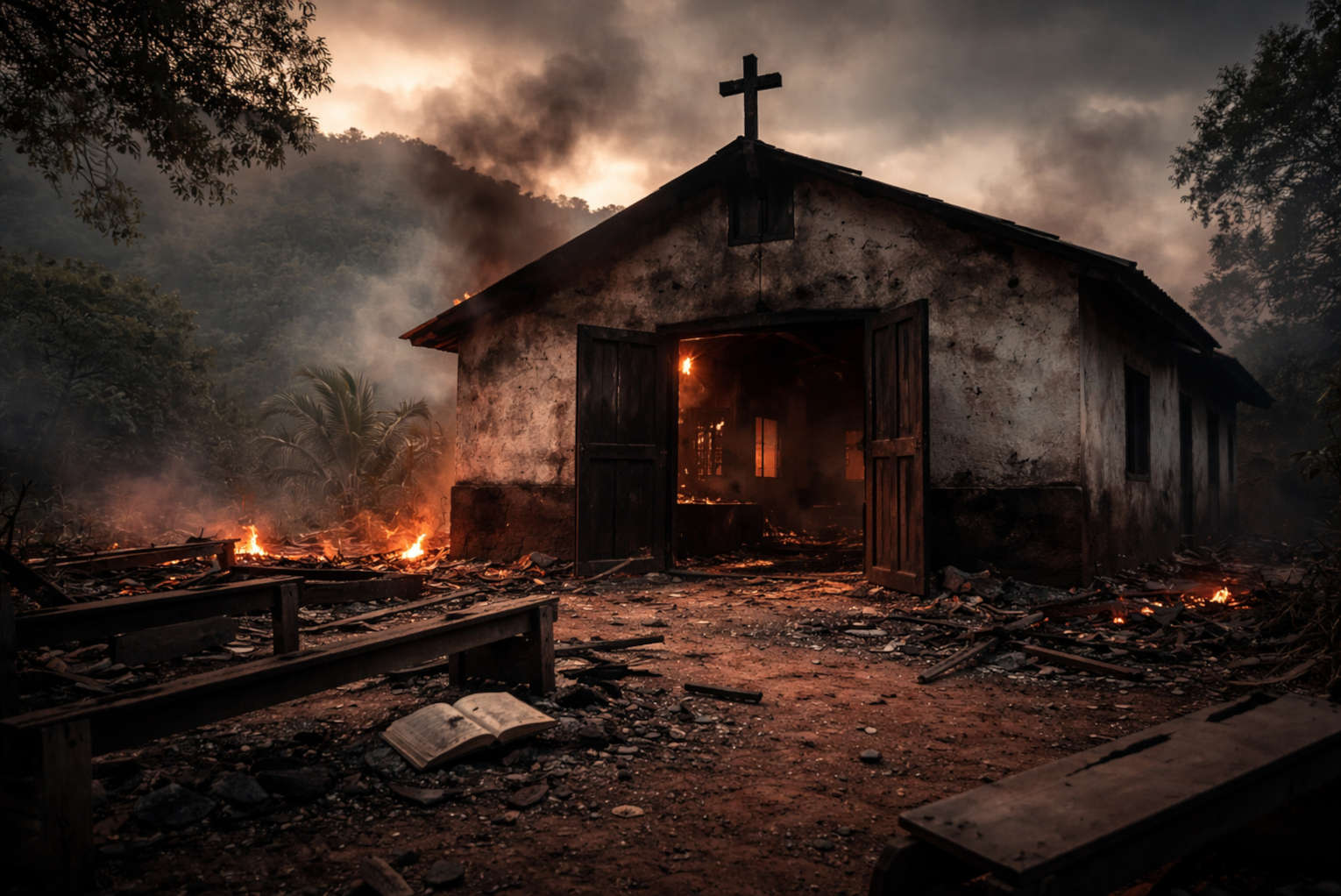 After facing opposition getting into Kurmin Wali, the BBC found chairs thrown around, prayer books on the floor, and instruments broken, as if the attack had just taken place.
