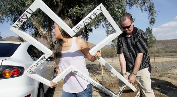 On Thursday, AnnMarie and Chad Devaney reluctantly removed a roadside memorial cross in Lake Elsinore, Calif., near the site where their 19-year-old son Anthony was struck and killed by a car in May 2012.