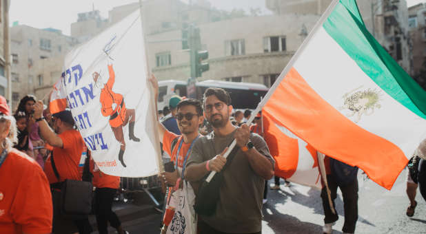 “It was beautiful to represent my country in the Jerusalem March today,” said Peyman Motjtahedi, an Iranian-born, Feast pilgrim who now serves as a worship leader in a large church in Dallas, Texas. “This was a very important part of my first visit ever to Israel, and I was thrilled to see the amazing reaction of Jewish people I met along the route. When I told them I loved them as an Iranian, they were shocked. Several people had tears in their eyes, especially the Persian Jews who recognized my flag.”