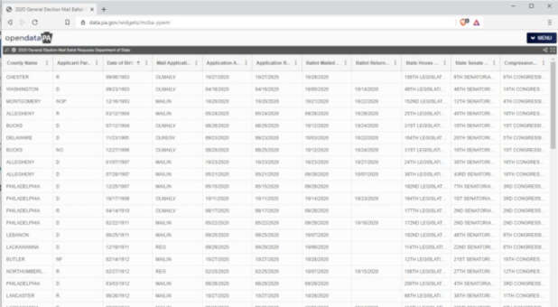 Our staff took screen shots of each of the 1,601 requests by people over 100 years old. We also downloaded the database as it was listed on the Pennsylvania website that day and have given the information to election observers.