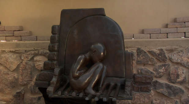 Wienecke presented a smaller version of the sculpture and described the piece in depth, including how he incorporated pennies in the floor of the oven, something unique to the Unknown Child project. To raise funds for the UCHR project, 10 limited-edition sculptures are being sold for $25,000 each and will be a major source of income for the construction.