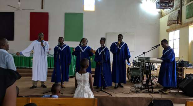 It’s early Sunday morning in the capital city of Rwanda, Kigali. People trickle in as worship continues. One robed singer even hops on stage mid-song to swap with another woman who is about to teach Sunday school.