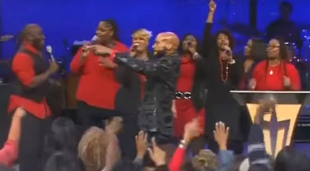 Amid rumors he had been placed on hospice, Bishop Eddie Long appeared on stage Sunday morning, clapping and dancing as he praised the Lord.