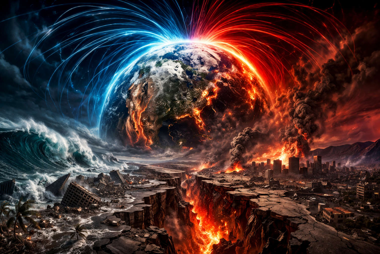 But others are warning that a sudden magnetic pole shift could cause every major fault line on the entire planet to rupture all at once. As a result, we would experience unprecedented earthquakes, giant tsunamis and insane climate adjustments.