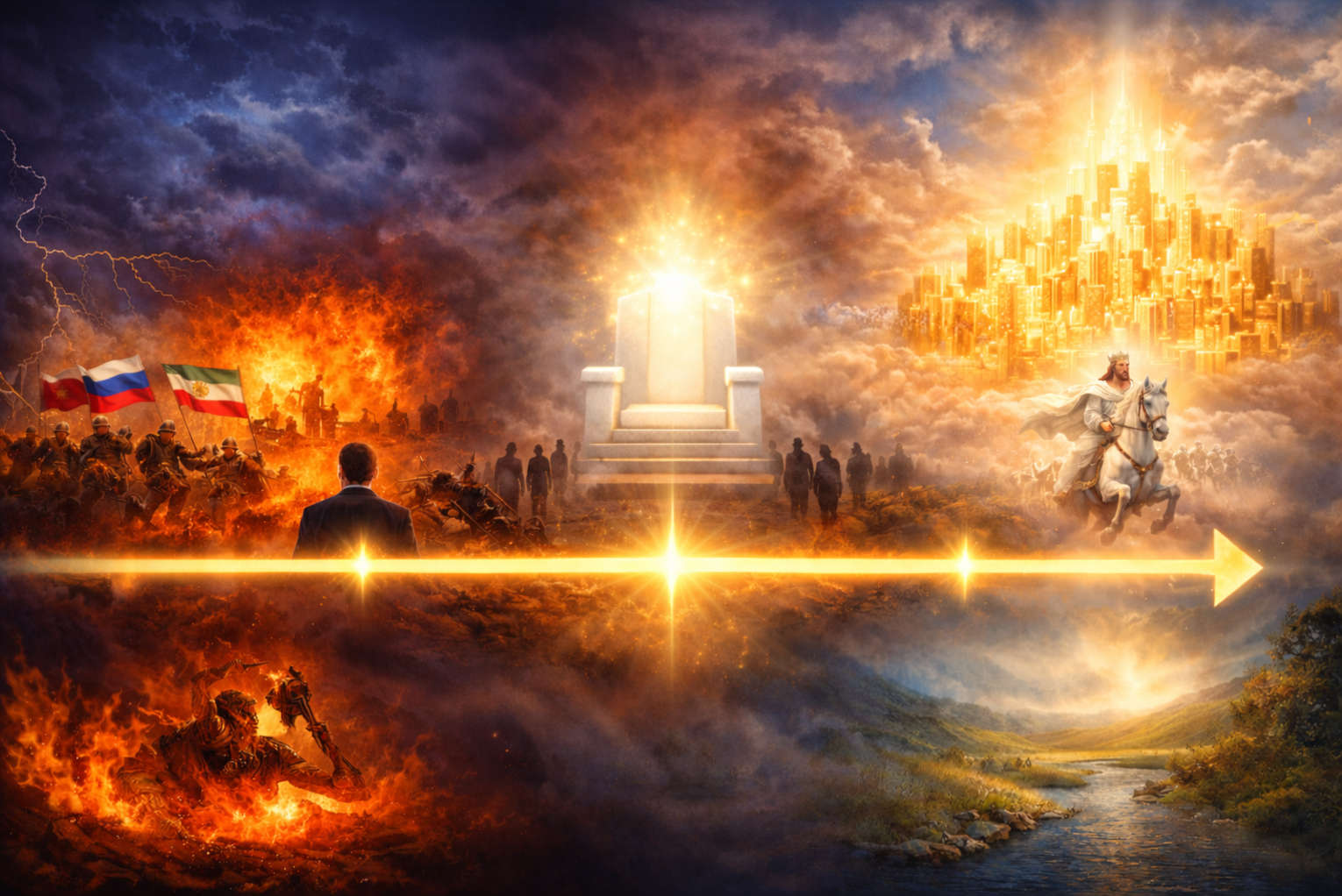 Midway through the tribulation period, a coalition of nations led by Russia and allied with Islamic powers launches an attack against Israel. This conflict fulfills the prophecy described in Ezekiel chapters 38 and 39.