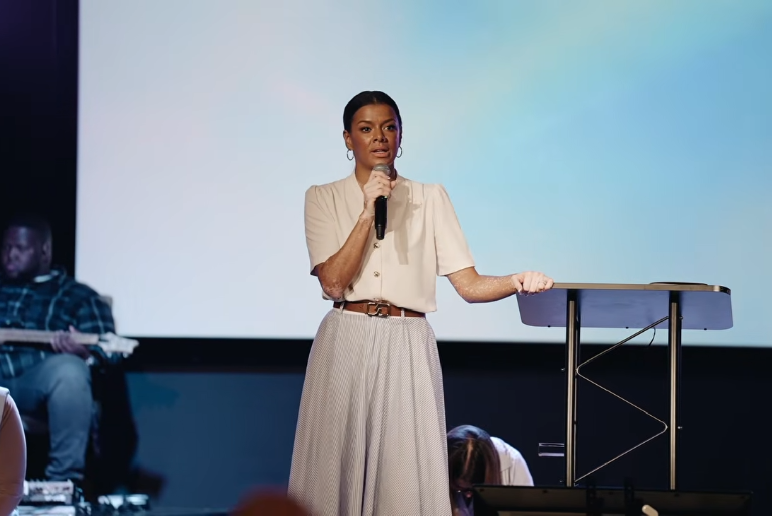 The moment carried a strong sense of urgency as Weaver paused her planned message, saying she felt compelled to respond to what she believed was the Holy Spirit’s prompting.