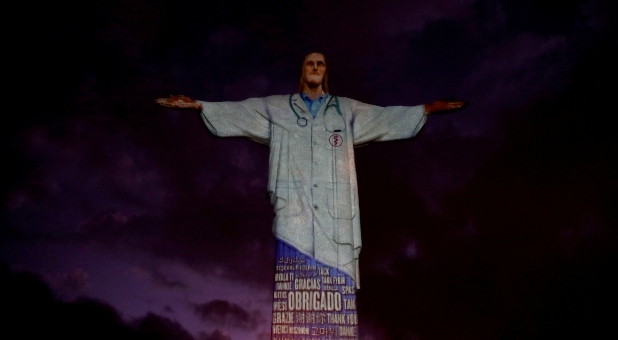 On Easter Sunday, the Christ the Redeemer statue in Rio de Janero, Brazil, was illuminated to look like a doctor to honor medical personnel as they face the coronavirus crisis.
