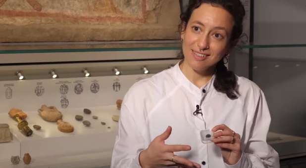 This “souvenir” found in the large collection donated to the museum depicts baby Jesus and a donkey, causing museum curators to believe it was from the “church of the nativity.”