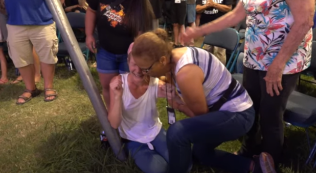 After a visit from Jesus earlier in the day at her home, the woman came to the tent crusade expecting a miracle. She received a supernatural experience and can now move in ways she couldn’t before.